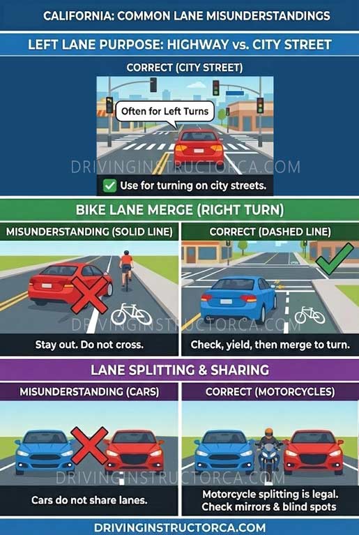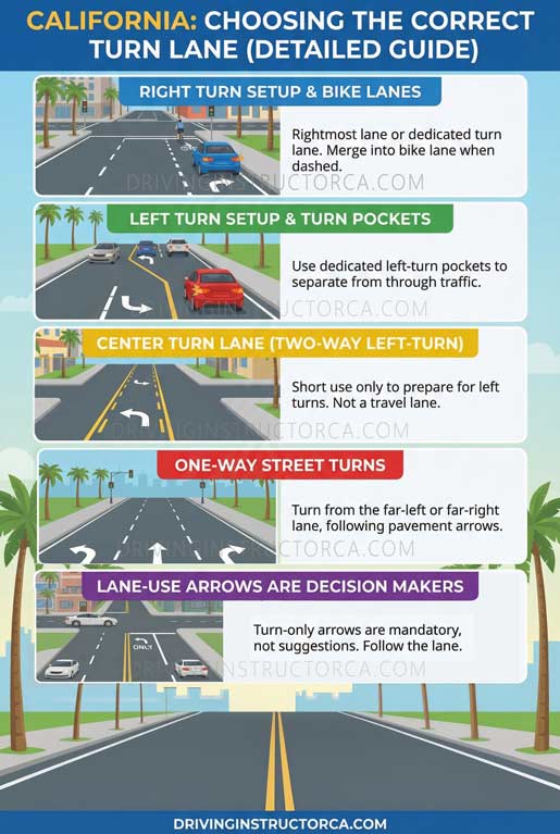 If your lane shows a turn-only arrow, it’s not a suggestion. If you realize late, the safest option is usually to follow your lane and adjust your route later, not cut across near the intersection.