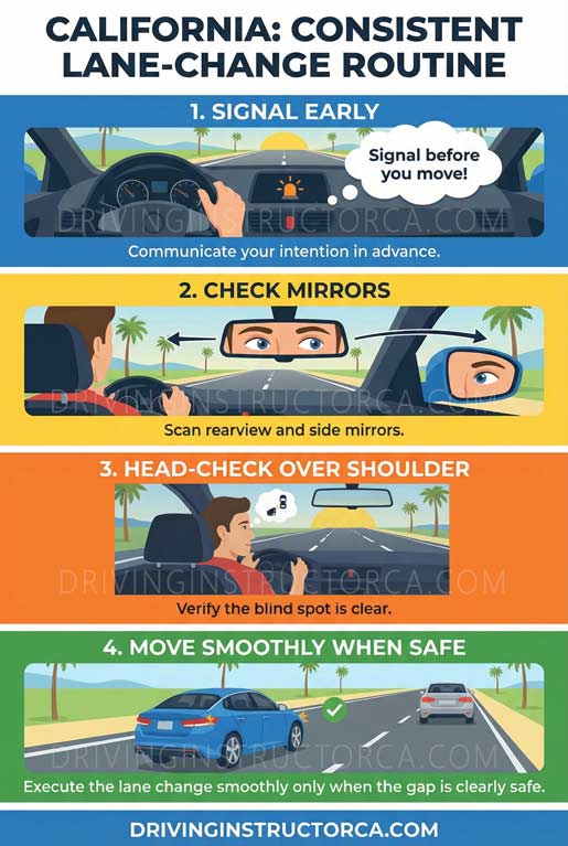 One more practical rule: even when something isn’t described as “illegal” in a question, changing lanes inside an intersection is a poor plan because space is tight and drivers around you are focused on their own turns and signals. Set up before you enter.