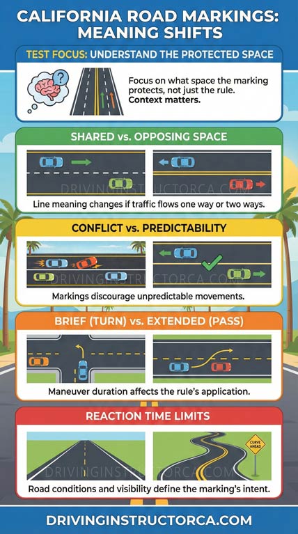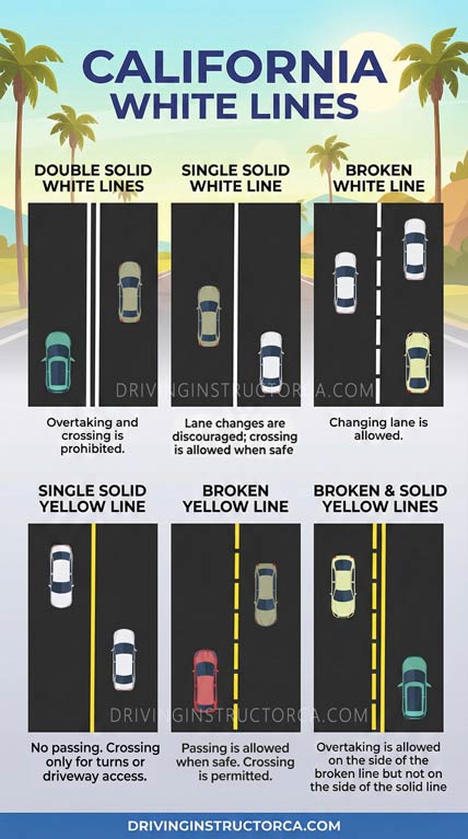 Solid and broken lines in California exist for one reason: to control how risk is managed on the road. They are not there to describe the road — they are there to limit uncertainty between drivers. When you understand that purpose, the markings stop feeling random and start making sense.